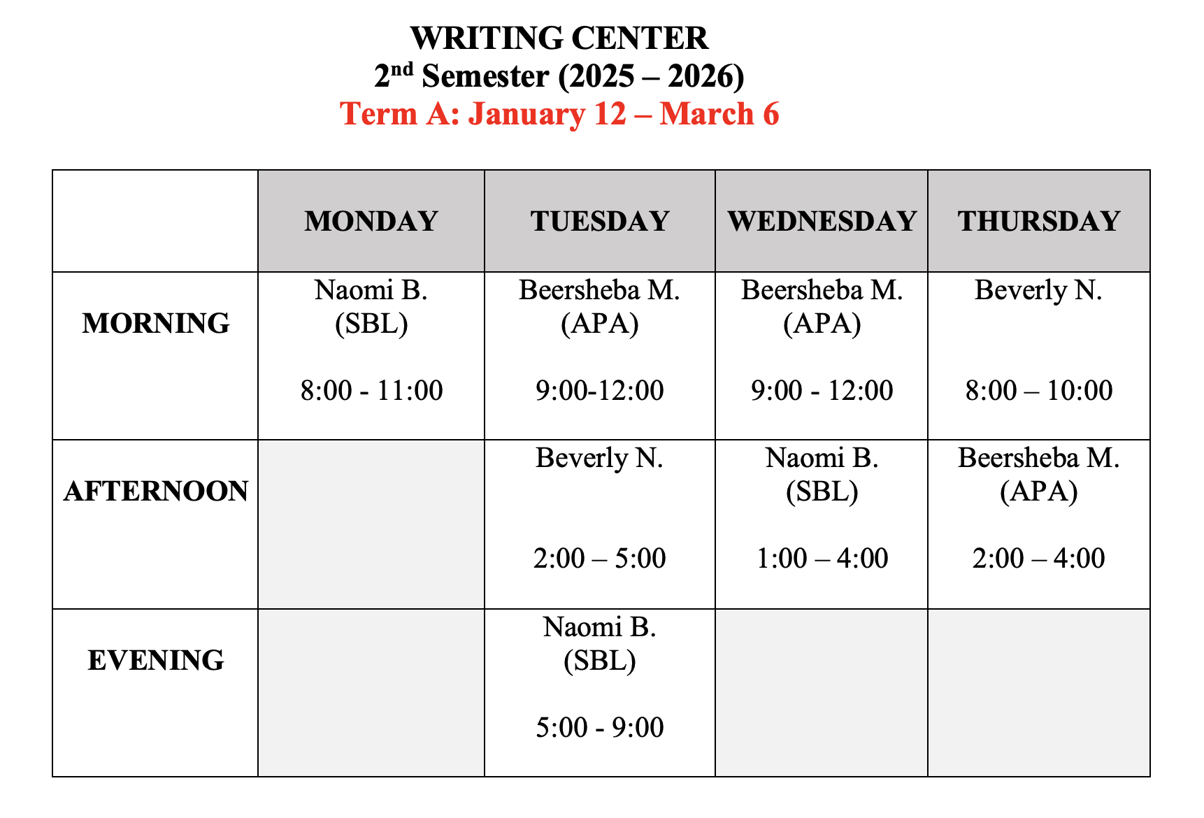 library, during our working hours (see the chart below).